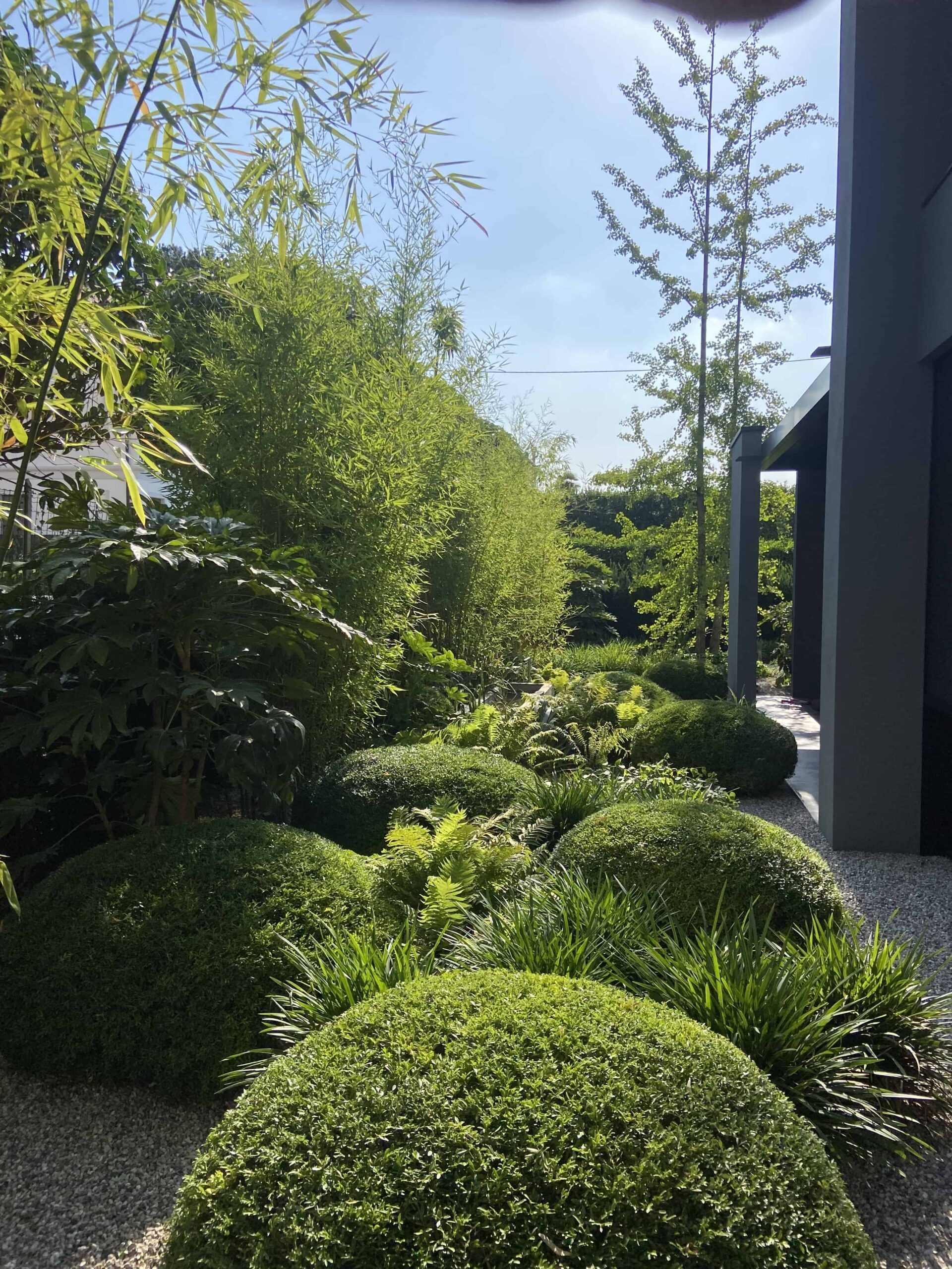 Scopri l’eleganza del giardinaggio moderno in questo progetto privato. Il giardino, parte integrante di una casa dal design contemporaneo, vanta composizioni floreali raffinate con taxus, ginkgo biloba, buxus balls e liriope muscari. Una sinfonia di forme e colori che trasforma ogni angolo in un’opera d’arte verde.