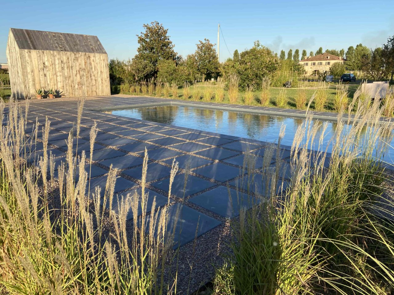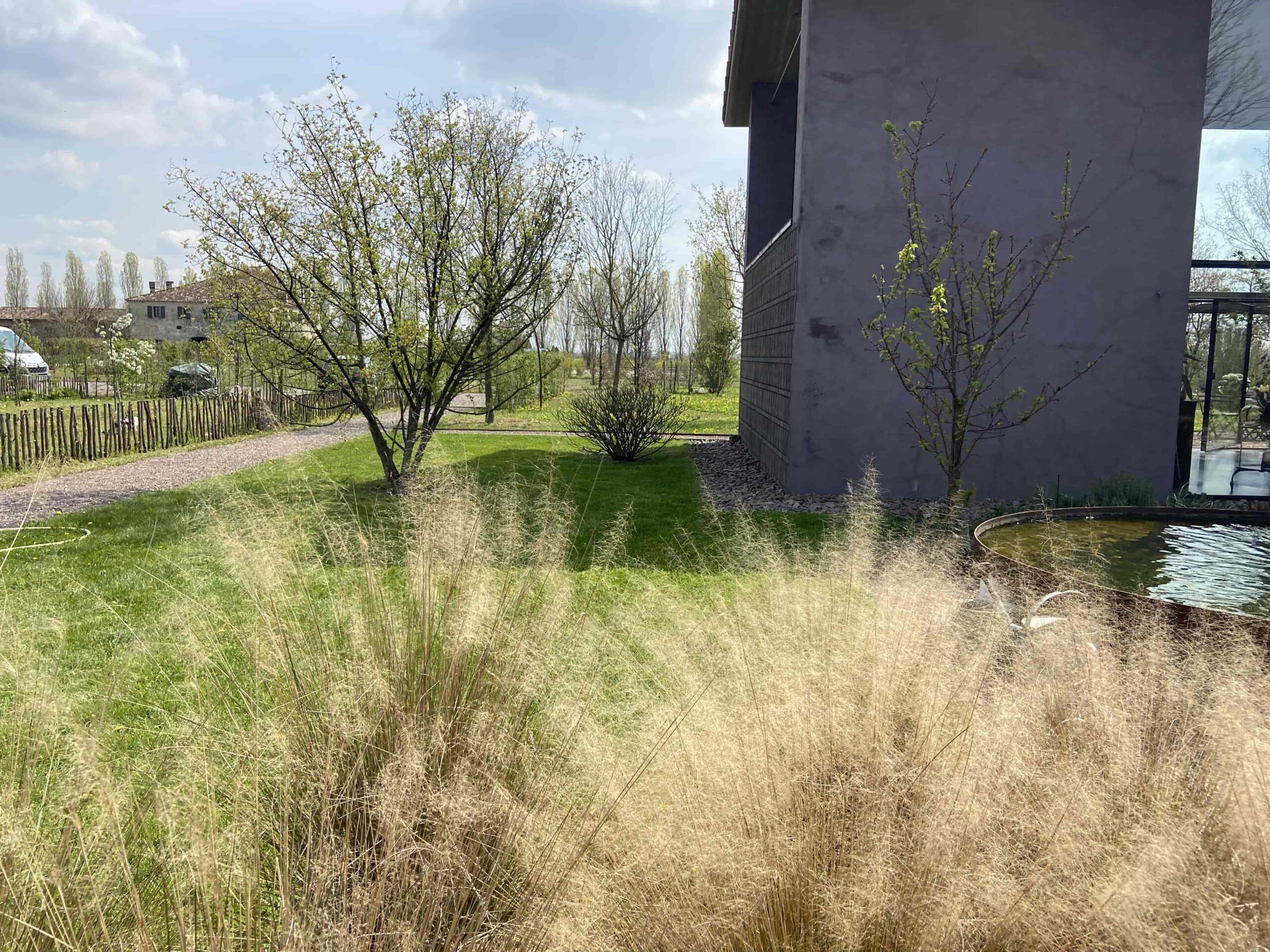 Esplora l’armonia moderna e sostenibile di questo grande giardino privato, parte integrante di una casa ecologica immersa nella bellezza della campagna. Le piante rustiche, tra cui giuggiolo, celtis australis, gelso, pioppo cipressino e acero campestre, abbracciano una moderna piscina interrata, circondata con grazia dal miscanthus purpurascens. Questo progetto fonde il design contemporaneo con la natura, creando un’atmosfera unica di sostenibilità e bellezza paesaggistica.