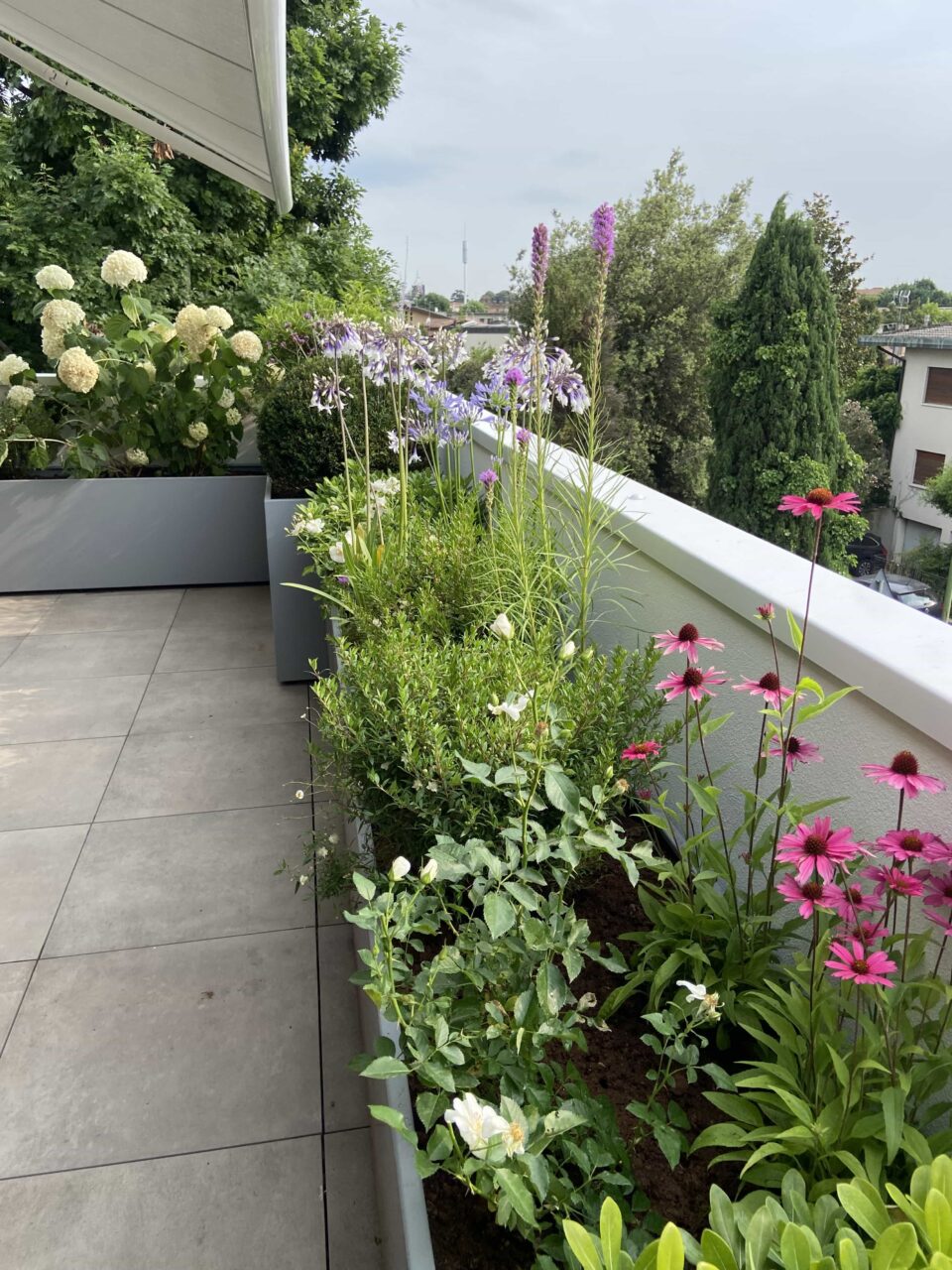 Esplora l'eleganza floreale con il nostro progetto terrazzo: un inno di colori che abbraccia il paesaggio circostante con stile e grazia.