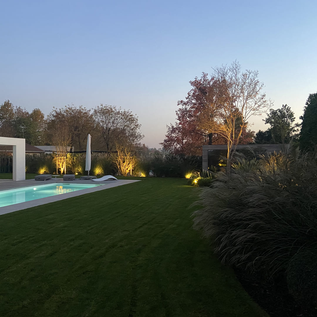 Esplora il nostro giardino moderno: forme, colori e verde perfettamente integrati.
